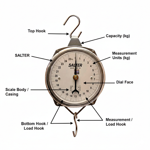 The Dial Type Spring Balance, a versatile tool designed to meet the rigorous demands of scientific inquiry in the laboratory. Metal body, it is provided with suspension ring at top and load hook at bottom. Dial dia 15 cm approx. Capacity: 10Kg, 20Kg, 50Kg, 100Kg